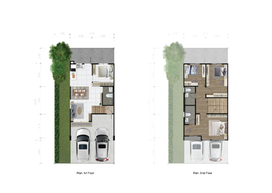 2 floors, 4 bedrooms, 3 bathrooms, 2 car parks